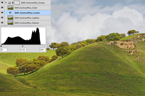 The script creates a Photoshop Layer Group “DOP_ContrastPlus_Group” with 4 layers .