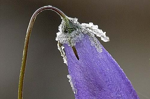 Hoarfrost on alpine harebell flower (Micro-Nikkor 200 mm f/4 ED)