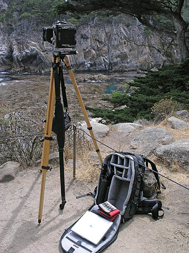 the tripod) was in this backpack. Once the 4x5 camera was setup Mike